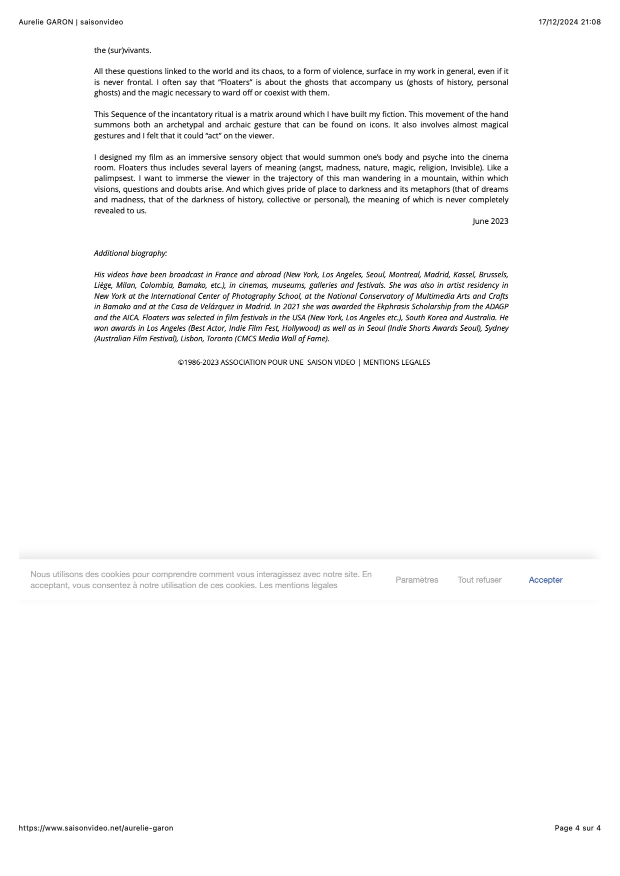 Un grand merci à Dan Abella du Philip K. Dick Film Festival de New York pour la Discussion/ Interview autour de mon film “Floaters” On a parlé des fantômes qui nous accompagnent. De mon goût pour l’exploration de la psyché humaine et de ses zones d’opacité. Du film comme expérience sensorielle et de la nécessité d’aller triturer la rétine & les tympans des spectateurs. De thérapie EMDR aussi. Et enfin, de mon lien viscéral avec la montagne et l’invisible.